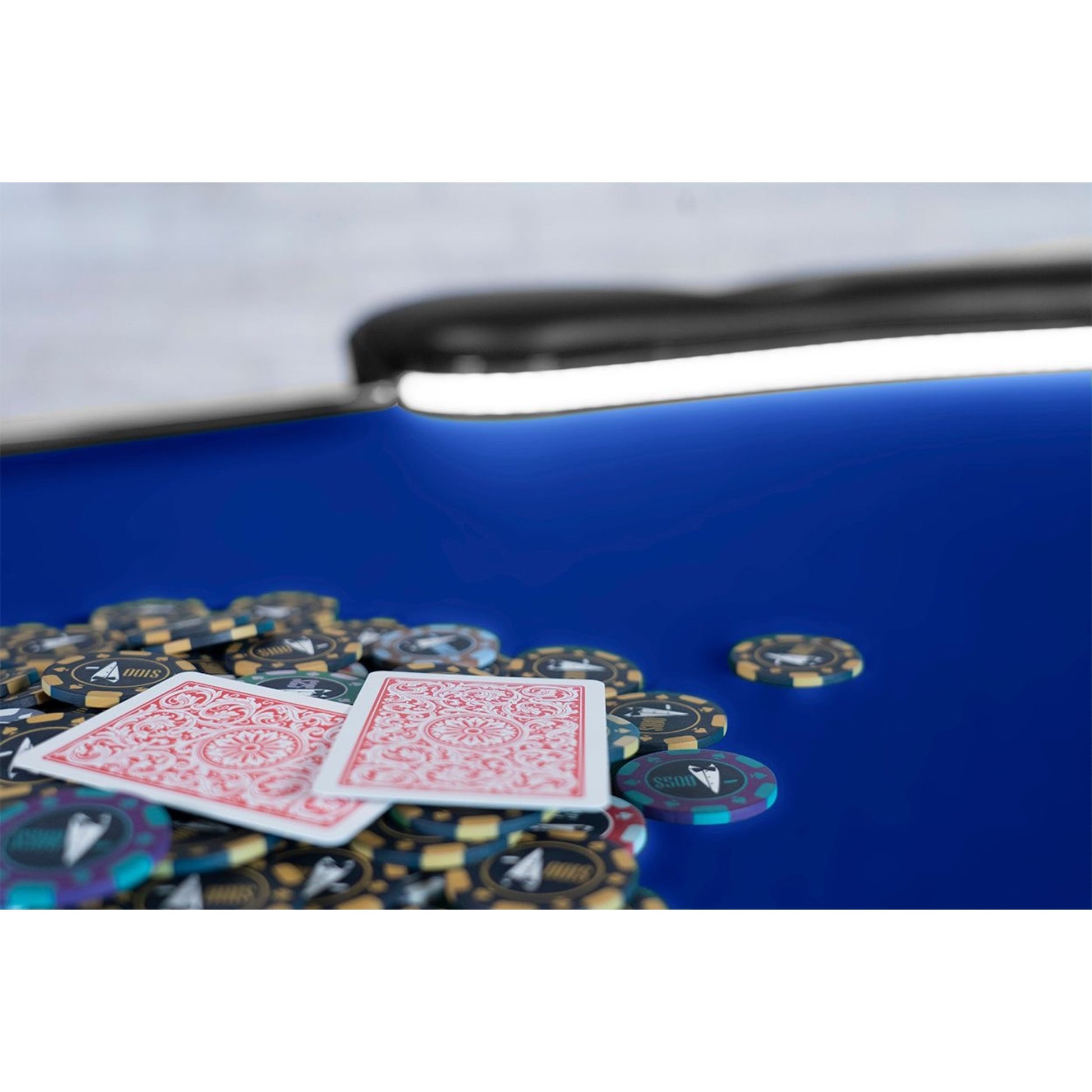 The fully integrated LED lighting system transforms your space with immersive color and atmosphere — perfect for tournaments, streaming, or high-stakes home games.