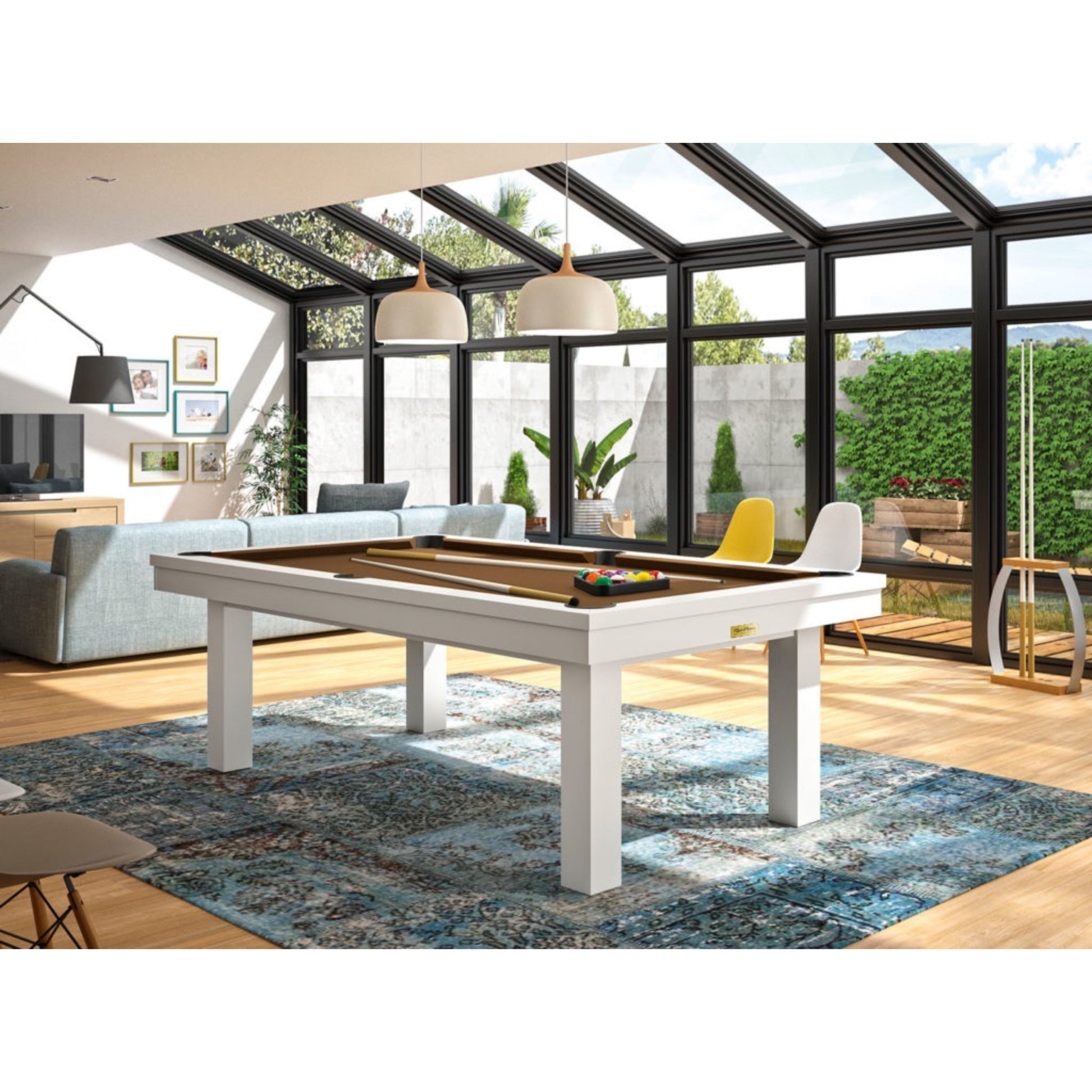 Dine & entertain: Optional tabletop converts the billiards table into seating for up to 10.