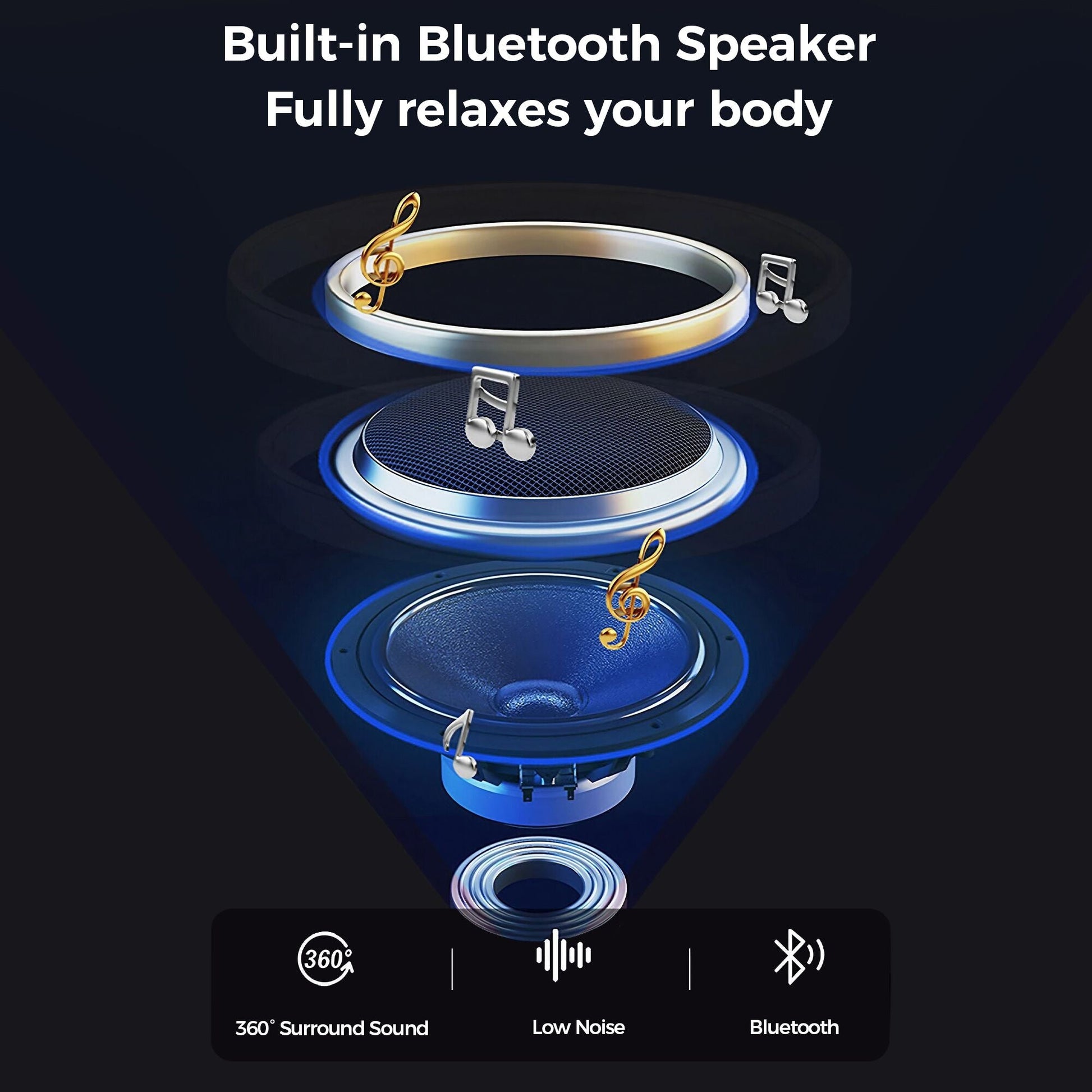 Immersive sound: Built-in stereo speakers for music or guided relaxation.