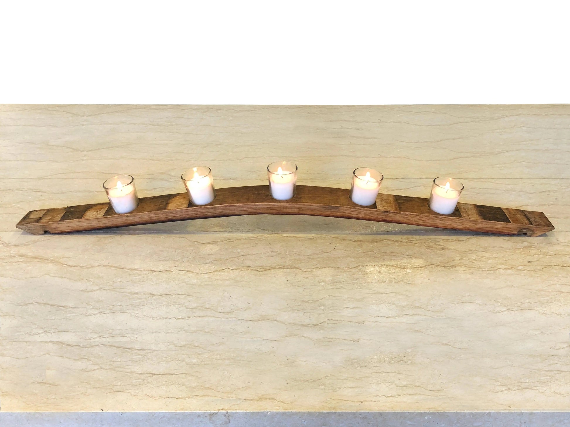 Whiskey Wine Barrel Stave Candle Holder, Table Centerpiece, Bourbon Barrel Home Decor, Unique Gift, Rustic Home Decor - Candles Included