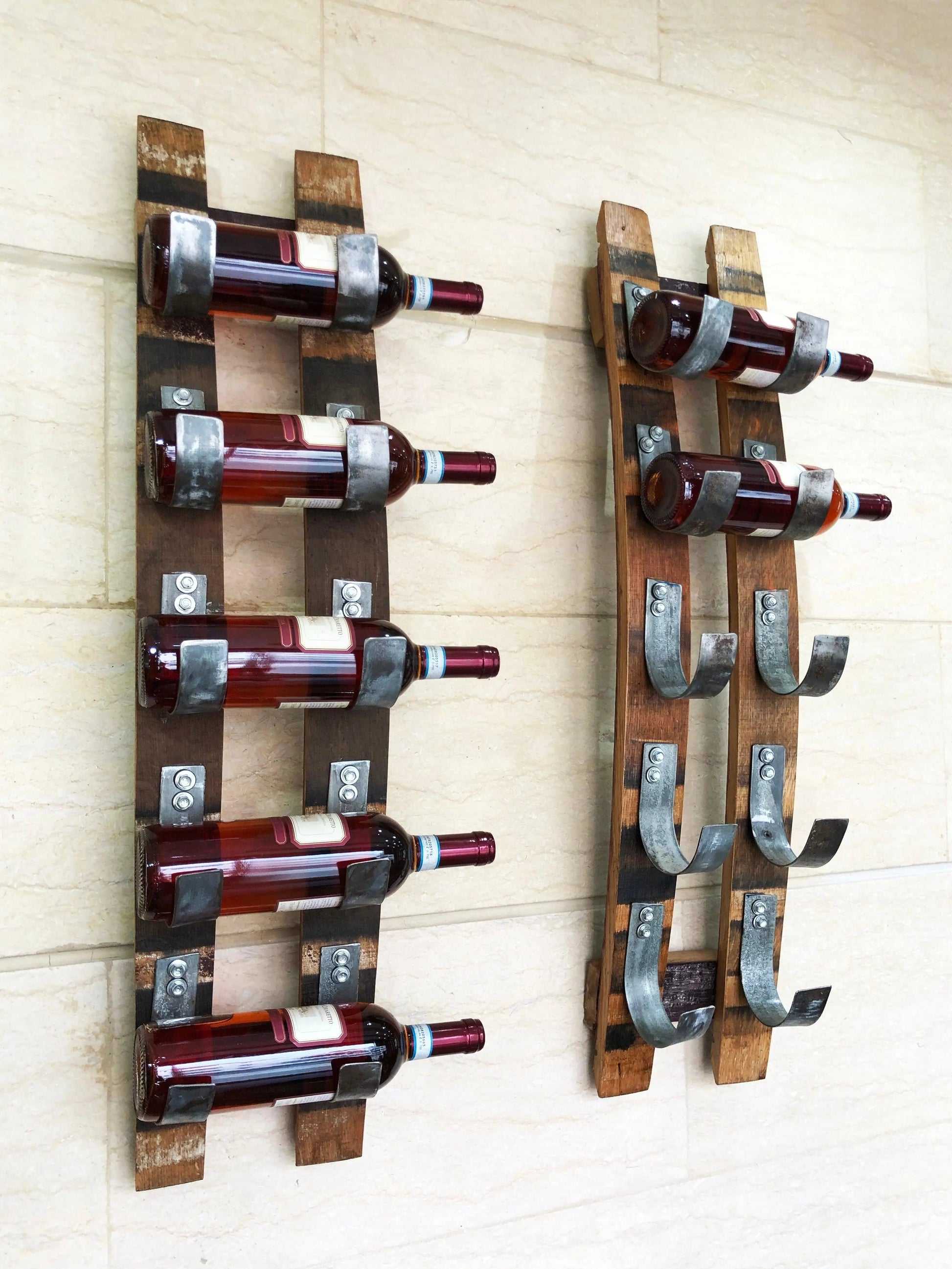 Wine Barrel Stave 5-Bottle Holder - Wall Mount Wine Rack - Rustic Wine Barrel Decor - Unique Wine Storage